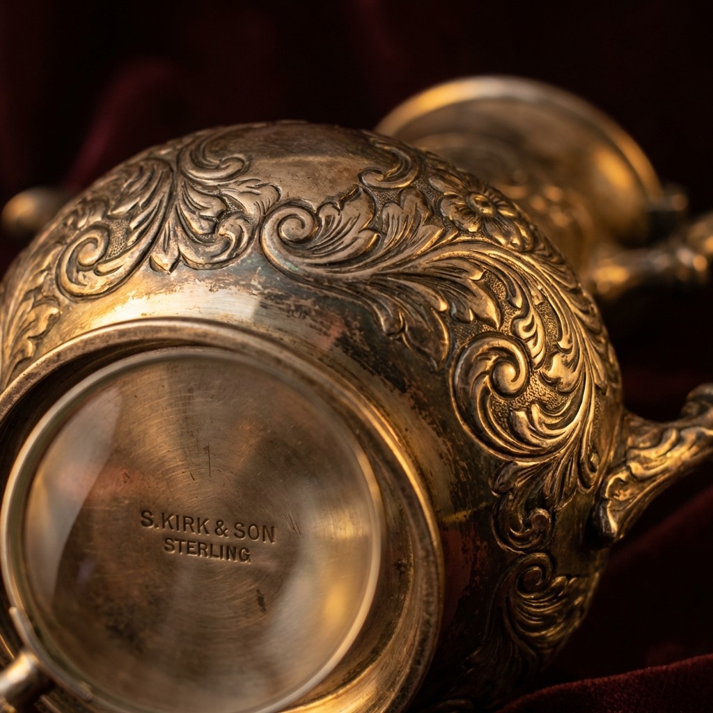 在 Tiffany 尚未成名之前,巴尔的摩的 S. Kirk & Son 已经是美国银器的代名词。它是美国现存最古老的银楼,其标志性的密集浮雕(Repousse)风格甚至被直接命名为“巴尔的摩花”。本文带你通过印记,看懂这家百年老店的兴衰史。